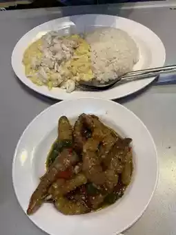 Lunch at Chula Soi 50 Kitchen featured crab meat omelette rice (THB 70/plate🍚) and mantis shrimp (THB 280/plate🍤). The crab meat was tender, the omelette rich and aromatic, and the shrimp was sweet and springy. The lively street atmosphere added to the authentic flavors, leaving a lasting impression! 😋