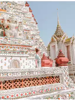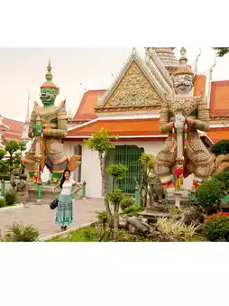 This magnificent landmark, over 70 meters high, is decorated with Chinese tiles and pastel-colored shells. It's stunning from any angle, especially when wearing traditional Thai clothing!