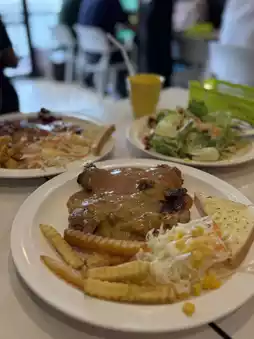 Enjoy a satisfying meal at a reasonable price. Menu items start from just tens of baht to a few hundred baht, including pork steak, chicken steak, and pork chop steak, plus side dishes and refillable drinks at affordable prices. They offer a wide variety of dishes, generous portions, and a student-friendly steakhouse. Recommended dishes include the pork chop, which is a great value and comes with a generous portion. The spicy chicken steak is perfectly spicy and comes with two pieces of chicken and your choice of sauce. Another recommended dish is the baked cheese mashed potatoes, which are incredibly delicious and priced at 29 baht. Perfect for groups of friends, solo, or families, the restaurant is conveniently located near Kasetsart University.