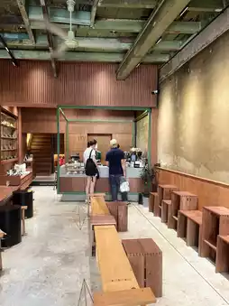 • The shop is housed in a two-story old building that's been beautifully renovated. The old structure, such as the floors and walls, retains much of the vintage look, but incorporates new materials to create a warm yet stylish atmosphere (wood and exposed concrete in some areas).