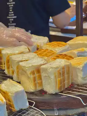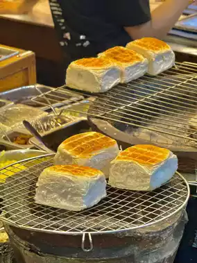 Famous charcoal-grilled bread from Banthat Thong 🍞