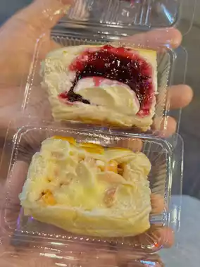 #Get a discount without relying on luck at Pang Det, Banthat Thong. I highly recommend their charcoal-baked bread, which is incredibly delicious and a favorite. The bread is soft and stuffed with a variety of fillings. They have a wide selection of fillings to choose from. I personally like the Oven Baked Crunchy and Blueberry Cream Cheese fillings. They're incredibly delicious, crispy on the outside and soft on the inside. If you're looking for a delicious bread shop, I highly recommend this one. The flavors are incredibly smooth and delicious.