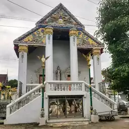 🙏🏽 Inside the ordination hall, the principal Buddha image, Phra Buddha Rattanapho Thivorayan, is enshrined. This Buddha statue is in the Mara Vichai posture. Due to the elevated structure of the ordination hall, it has two levels.