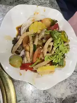 • A wide variety of side dishes and appetizers are available. Somtam, yam, khanom jeen, fried food, desserts, and Thai sweets are also available. This creates a grand atmosphere, not just a simple pork and vegetable dish. The combined photos of the dishes add a vibrant touch.