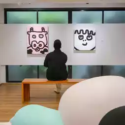 The exhibition also features adorable large-scale sculptures, art toys, and stationery that allow viewers to "play with faces."