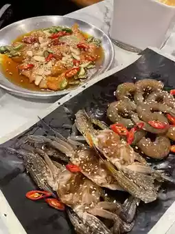 🔥 Korean BBQ lovers, this is a must-try! Shell We Meat serves up an all-you-can-eat Korean BBQ buffet with everything from juicy pork belly, marinated pork in Korean sauce, and sliced beef, paired with plenty of classic sides like kimchi, steamed egg, and rich kimchi soup. On top of that, they’ve got a wide variety of Korean-style appetizers – my favorites are soy-marinated shrimp, soy-marinated crab, spicy marinated crab, and soy-marinated salmon 🍲.