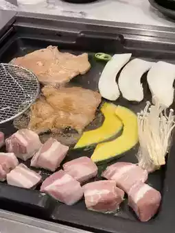 สายปิ้งย่างเกาหลีต้องห้ามพลาด! ร้านนี้จัดเต็มบุฟเฟต์ปิ้งย่างสไตล์เกาหลีแบบจุใจ 🥓🍖 มีทั้ง หมูสามชั้น หมูหมักซอสเกาหลี เนื้อวัวสไลด์ เสิร์ฟพร้อมเครื่องเคียงแน่นๆ อย่างกิมจิ ไข่ตุ๋น และซุปกิมจิรสเข้มข้น พร้อมอาหารทานเล่นเยอะมาก ที่ชอบที่สุดคือ กุ้งดองซีอิ๊ว ปูดองซีอิ๊ว ปูหมักซอสเกาหลี และแซลมอลดองซีอิ๊ว🍲