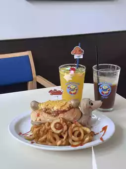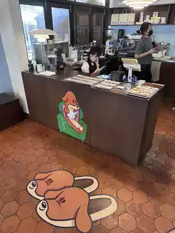 Not only are they adorable, but the desserts are delicious! We ordered a hot dog and orange juice, which were incredibly refreshing. They even had a dog-shaped plate as a gimmick. Cafe lovers, this is a must-visit. The cafe's decorations change with different themes, but this time, it's this dog-themed one.