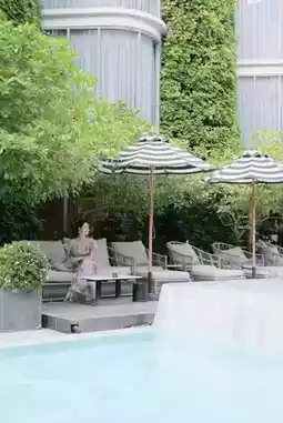 The pool faces the river view ๐๏ธ Perfect for soaking while watching the sunrise and sunset. In the evening, the lounge chairs by the pool cast tree shadows, making photos look like movie stills.