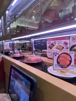 The restaurant is clean and well-organized, with a systematic queue management system that ensures quick service. Customers can choose sushi directly from the conveyor belt or order special menu items via the touch screen at their table, which is convenient and user-friendly.