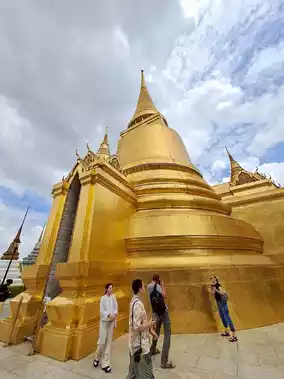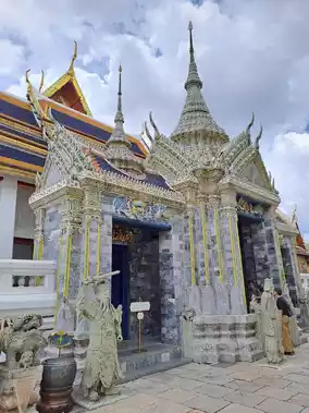 เมื่อเดินเข้าสู่เขตพระบรมมหาราชวัง คุณจะได้พบกับบรรยากาศที่งดงามอลังการ 🏰 ทุกอาคารถูกออกแบบอย่างประณีต ประดับด้วยกระจกสีและทองคำที่ระยิบระยับเมื่อกระทบกับแสงแดด 🌞 เสมือนเข้าไปอยู่ในโลกอีกมิติที่เต็มไปด้วยพลังแห่งศรัทธาและความศักดิ์สิทธิ์