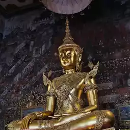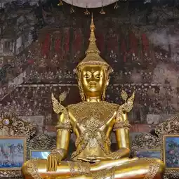 Phra Phuttha Maha Chakraphat Wat Nang Nong is the principal Buddha image enshrined in the ordination hall of Wat Nang Nong Worawihan in Bangkok. This Buddha statue is adorned in the grand attire of a Chakravarti (Universal Monarch) in the Mara Vichaya posture. It was created during the reign of King Rama III. The statue is notable for its elaborate and complete regalia, and it is renowned for its beauty and sanctity. Devotees believe they can pray for blessings related to work, wealth, love, and overcoming obstacles. There is a story that the original crown of the statue was taken to be placed atop the spire of the Phra Prang at Wat Arun, and King Rama III graciously ordered a new crown to be made and offered in its place.