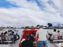 The Riva Express, a red-flag air-conditioned express boat, is another new option for traveling on the Chao Phraya River. Highlights include air-conditioned cabins, comfortable seating, and reduced heat and dust. The main route from Nonthaburi to Sathorn takes a quick 30-40 minute journey. It features an open-air deck offering stunning views and amenities such as restrooms. Thai and English pier signs are displayed, and payment is accepted with the Rabbit card.