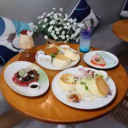 Today, we're featuring Ryoku Cafe, a cafe-style restaurant known for its distinctive decor. They're currently hosting a spectacular Flower Blossom theme throughout the entire restaurant, creating tons of photo opportunities, perfect for cafe lovers. Furthermore, they're known for their Fluffy Pancakes, which are incredibly fragrant, soft, and smooth, combining savory and sweet dishes perfectly. We highly recommend stopping by and trying them! They're located in Soi Phrom Phong, next to EmQuartier.
