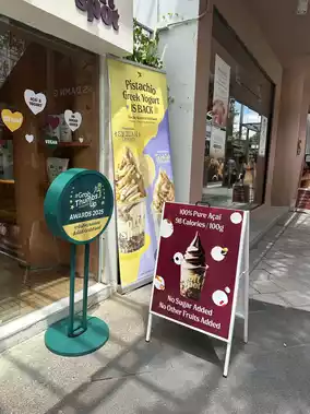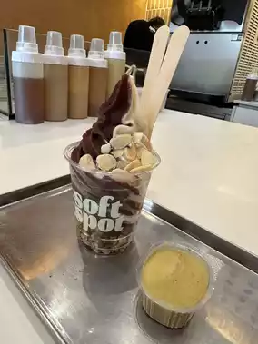 The ice cream here is soft serve with an incredibly smooth texture that melts on your tongue effortlessly. The flavors are not overly sweet but perfectly balanced. There are various options to try, including yogurt and rich Acai, as well as seasonal flavors that change regularly. This keeps you wanting to come back for new experiences every time.