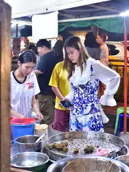 Open all day, they serve breakfast, desserts, savory dishes, and even late-night meals. Talat Phlu is busiest in the evening and late at night, perfect for foodies looking to explore the famous old-world restaurants.