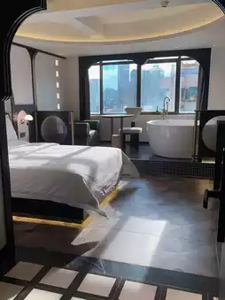 The restaurant has soft background music and offers a choice of tables for individuals and groups. The lighting isn't too bright or stuffy, and the service is clean and pleasant. The staff are friendly and provide excellent service.