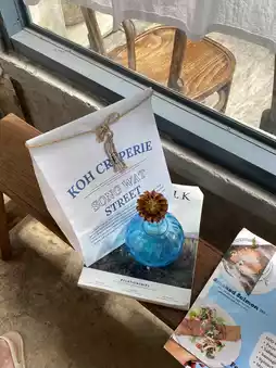 A small Italian-style crepe shop located on Song Wat Road. Decorated in a lovely wood and blue tone, the shop has tables that can seat about 15-20 people.