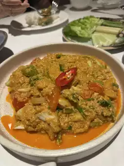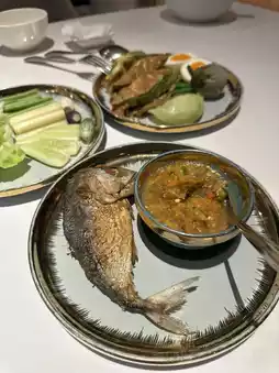 🌟Steamed Fish in Two Nam Curry Sauce: Khao's signature dish is their use of sea and freshwater fish mixed with curry paste and topped with a delicious Thai-style chili fish sauce.
