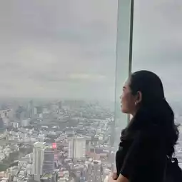 Take your friends to one of Bangkok's most beautiful views: Baiyoke Tower 77. This beautiful floor showcases the history of Baiyoke Tower 2. There are various photo opportunities, including 1990s shops, a statue of Luang Por Sian Por Kae, a Thai tuk-tuk, a motorcycle with a sidecar, a telephone booth, and even a replica of Baiyoke Tower. You can choose to see a 360-degree view. If you're meeting friends or family for dinner, you can take photos at Baiyoke Tower 77. You're guaranteed to be impressed by one of Bangkok's most beautiful views, whether during the day, at sunset, or at night. Don't miss this floor!