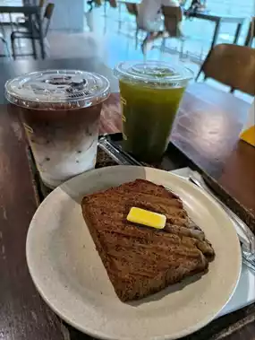 The seats are located on the right-hand side. The atmosphere is quiet, with few people chatting. Perfect for sitting by the window, enjoying the view, listening to music, and sipping coffee.