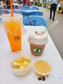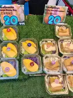 The swordfish balls, banana chocolate crepes, and meat skewers are all delicious. One skewer shop is offering a buy-two-get-one-free deal, so six skewers are only 40 baht—super exciting! The mango sticky rice is only 20 baht, and of course, I devoured it! 🥰👍 I also had the durian sticky rice. It's 20 baht, amazing! 👍 Avocado milk with honey is 50 baht, super delicious!❗ Of course, there's also beef, which my husband loves, 200g for 100 baht, and it's pretty good!👍