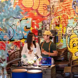Don't just sit around at home and get bored on a Saturday night! Grab your friends and hang out at this chic rooftop bar in the heart of Bangkok, in the Thonglor area. Located on the top floor of The Quartier Hotel Phromphong - Thonglor, the bar is beautifully decorated in a chic '80s style, combining vintage, cool, and luxurious elements. The bar offers both indoor and outdoor seating, a great atmosphere, and plenty of photo spots. It's also a great place to host a small party, as there's a swimming pool.