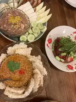 This Thai home-cooking style restaurant offers a warm and cozy dining experience, reminiscent of eating at a friend's house. The dishes are flavorful, delicious, and unique, with some being rare to find. The menu changes monthly and consists of a set of 10 dishes, including one dessert, ensuring a satisfying meal. 😋 If you can't finish your meal, you can request to take the leftovers home. Additionally, there are extra menu items available for dine-in or takeaway.