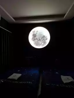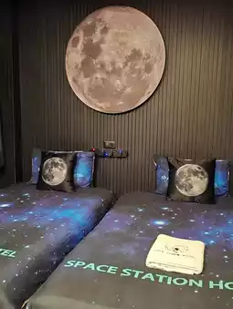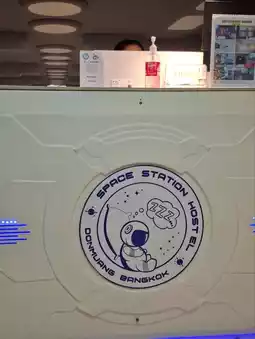#tripbestfreeaccommodation 🌌 Space Station Hostel is perfect for travelers looking for affordable, near-the-airport accommodations. Located near the Don Mueang Red Line train station and just 700 meters from Don Mueang Airport, it's incredibly convenient for early morning flights. The hostel's interior design and decor evoke the atmosphere of a space station or spaceship. 🚀🌠 Rooms come in both dorm and private rooms. The interior is clean and simple, with all the basic amenities like free Wi-Fi and air conditioning. Some rooms even come in space capsules, which is incredibly chic. There were three of us, so we booked a private room for three people with an ensuite bathroom. The room was decorated in a space theme, with a beautiful moon at the head of our bed for photos. There's no elevator, so if you have large luggage and need to stay on a higher floor, you can leave your bags in the lobby and take only your clothes or belongings upstairs.