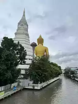 Looking back from the riverbank, the silhouette of the Giant Buddha against the white glazed pagoda creates a striking contrast, equally moving. It's not just a visual experience; it's a spiritual one. In this space, the mind naturally calms, the mind clears, and one can truly experience the aura and tranquility it embodies.