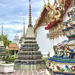 Famous for its giant reclining Buddha statue 🛌 (46 meters long), intricate murals 🎨, and traditional Thai architecture 🏯. Visitors can explore meditation halls, beautifully decorated pavilions, and the serene temple grounds 🌸. Wat Pho is also known as the birthplace of traditional Thai massage 💆♂️, with massage schools on-site.