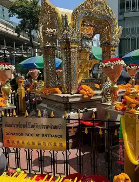 Famous for the golden four-faced Brahma statue 🟡, the shrine attracts devotees and tourists alike 🌸. Visitors can witness traditional Thai dances 💃 offered as prayers, make offerings of flowers and incense 🌿, and soak in the spiritual atmosphere. A peaceful yet vibrant spot amid Bangkok’s bustling cityscape 🏙️.