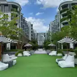 About the hotel itself, it opened in 2022 and is well-maintained with complete facilities. The pool is beautifully designed, surrounded by trees, making it perfect for Instagram-worthy photos. On hot days, you can take a dip and chill. The rooms are very clean and reasonably spacious, with some room types even equipped with a microwave and Harnn-brand toiletries, ensuring a comfortable stay. The hotel also offers comprehensive public facilities, including a spa, gym, and fragrance shop, making it convenient whether you want to relax or work out.