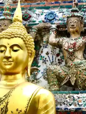 Bangkok, Thailand’s bustling capital, lies along the Chao Phraya River 🌊, around 30 km from Suvarnabhumi Airport ✈️.
