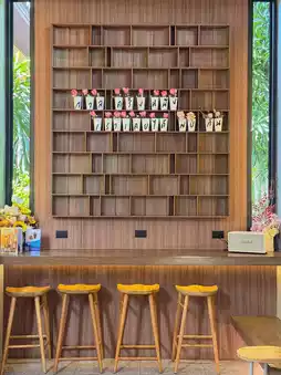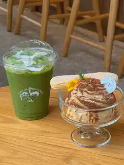 ✨ A cozy cafe in the Sutthisan area with a relaxing atmosphere. The cafe is decorated in soothing earth tones, surrounded by lush greenery and the refreshing sound of a small waterfall. It's a perfect spot to work, sip coffee, enjoy desserts, or simply unwind. 🌳🏡