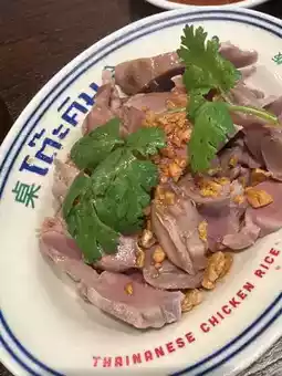 You'll want to try it! The tender chicken, the creamy liver, and the extravagant offal are just as good. The grilled pork neck is also excellent. Everything is perfectly balanced, served with three dipping sauces. It's a perfect combination. If you're in the city and stopping by CentralWorld, make sure to pin Toh-Kim Chicken Rice to try it. You won't be disappointed.