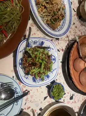 The restaurant's décor is elegant, blending Chinese and contemporary styles, creating a warm yet slightly luxurious atmosphere.