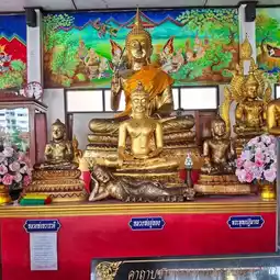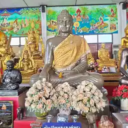 🏚 The prayer pavilion housing several Buddha images in various postures, including Somdet Phra Phuttha Metta, Phra Phuttha Mongkhon Prathan Phon, Luang Pho Dvaravati, Luang Pho U Thong, Phra Sangkachai, revered monks, and Thao Wessuwan.
