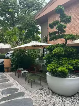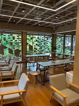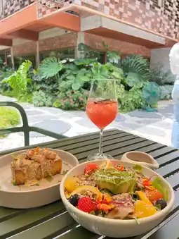 The interior is also beautiful, with two floors and cool air conditioning. However, on Sunday, we were very busy, so we sat outside, which gave us a different vibe. Highly recommended for photography enthusiasts!