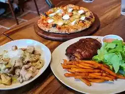 Fam Time Steak and Pasta at One Bangkok branch offers homemade pizza and steak dishes with soft, fragrant dough. The restaurant has a cozy and charming atmosphere, making it a delightful place to dine. Fam Time Steak and Pasta provides two seating zones: indoor and outdoor. The outdoor area offers a beautiful view of the buildings and is adorably decorated.