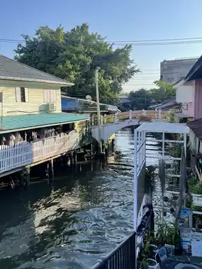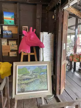 If you're looking for a peaceful corner of Bangkok that still retains the charm of local life, you should definitely visit "Baan Silpin" at Khlong Bang Luang Floating Market. 🎨🏡 This old wooden house by the canal has been converted into a cafe, gallery, and small art space. The atmosphere is warm and welcoming. 💕