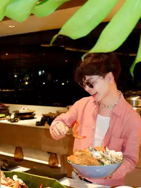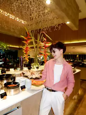 Dinner was a satisfying seafood dinner buffet featuring river prawns, oysters, sushi, and fresh sashimi. It was a satisfying experience.