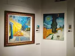 📸... Inside the gallery, you'll find oil paintings by the artist, each faithfully replicating the original, such as the famous Sunflowers, Staring Night, and others. Each painting is individually labeled with the artist's name. Visitors can also purchase their favorites to take home.
