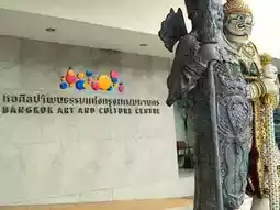 The Bangkok Art and Culture Centre (BACC) is located at the Pathumwan Intersection, at the corner of Rama I Road and Phaya Thai Road (next to MBK Center/Siam Square One/Siam Paragon). This nine-story cylindrical contemporary art gallery features exhibitions, a cinema, a library, a collection of works, a meeting room, a shop, and a restaurant. It hosts rotating exhibitions featuring the work of artists from various disciplines.