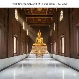 📝 Description: “Wat Benchamabophit… is a temple whose beauty lies not only in its architecture, but also in its inner peace. 🕊️ This royal temple, built during the reign of King Rama V, uses imported Italian marble, blending Thai and European art in a harmonious blend. Begin your trip by strolling through the marble chapel, which gently reflects natural light. Continue by paying homage to the replica of the Phra Buddha Chinnarat Buddha image inside the chapel. Take a break in the shady and tranquil garden surrounding the temple. Perfect for families and photography enthusiasts, stay at The Raweekanlaya or Casa Vimaya, which offer a warm atmosphere, million-dollar views, and are close to historical sites. Wat Benchamabophit is not just a tourist attraction… it's a lesson in beauty, tranquility, and cultural harmony.”