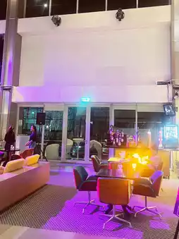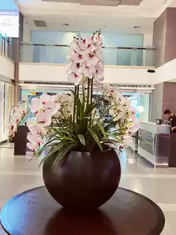 Soaring ceilings, sleek marble floors, and floor-to-ceiling windows flood the space with natural light, while local art and lush greenery add a touch of cultured serenity. Whether you're checking in or meeting friends, this sophisticated yet welcoming atmosphere sets the tone for a memorable stay.
