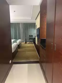 Today, I slept in a twin bed. The bed was comfortable and the bathroom was spacious.