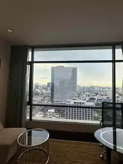 I got a room on the 22nd floor with wide floor-to-ceiling windows offering views of Rama IV Road and Lumpini Park in the corner. The TV in the room was digital, allowing me to watch YouTube and cast it to my phone.