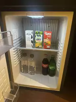 There was both a shower and a bathtub. What was even more impressive was the fully stocked minibar.