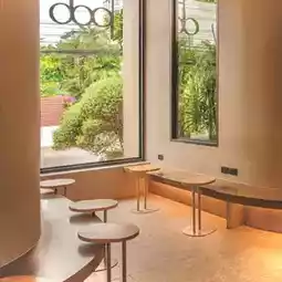 The calm, relaxed atmosphere is perfect for working or enjoying a quick coffee with friends. It's a warm, yet stylish home away from home vibe. Whether you're working, reading, or simply enjoying a relaxing coffee after a busy day, it's perfect for content creators. There are plenty of photo spots! Whether it's at the counter, by the mirror, or in the afternoon, the light is absolutely stunning. 🌤️